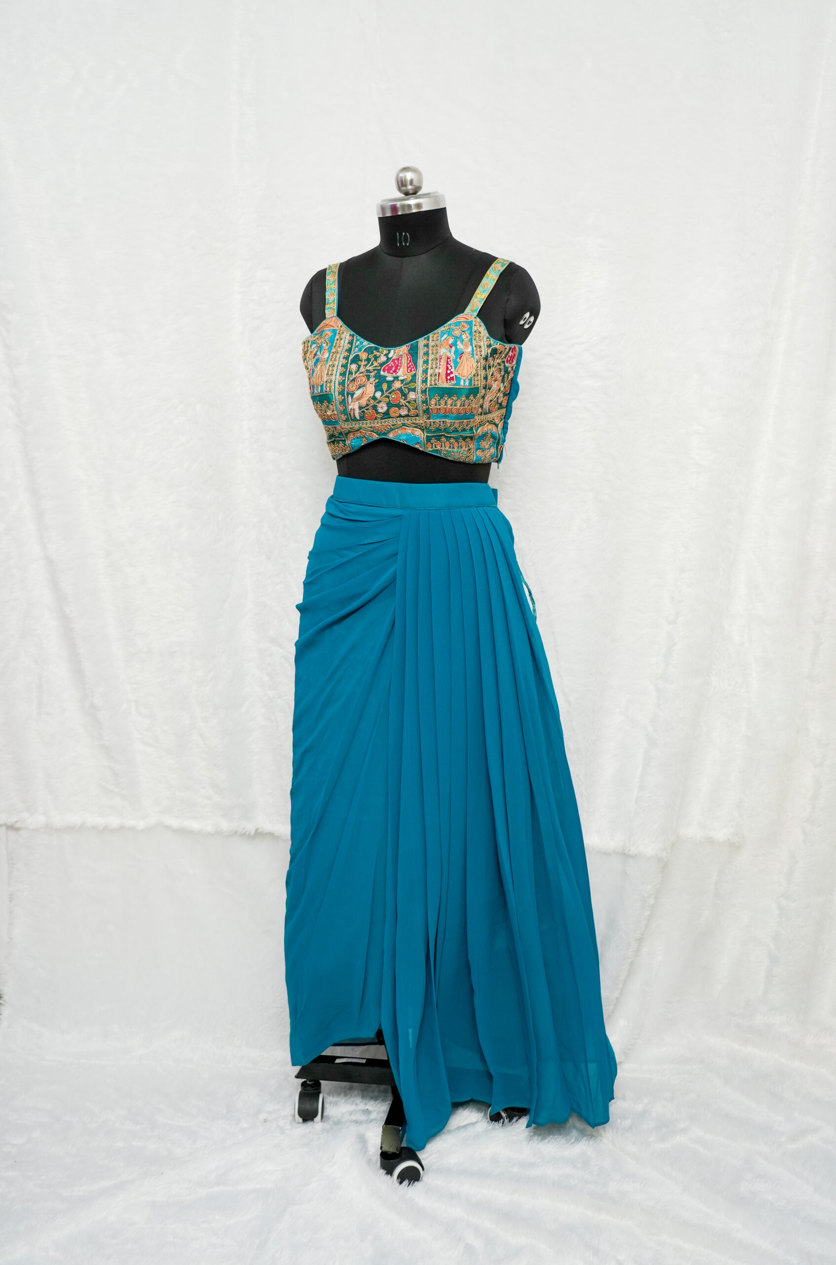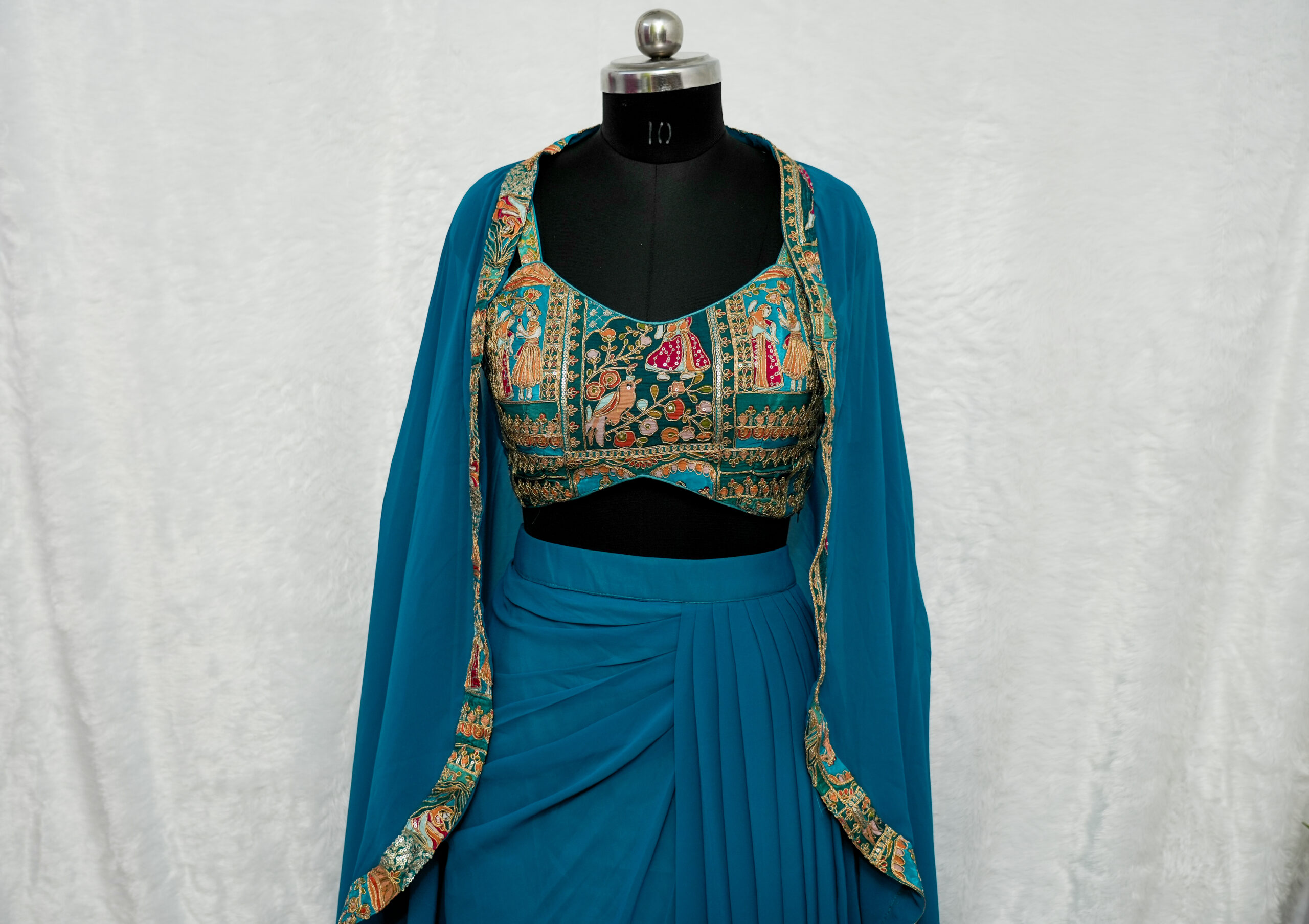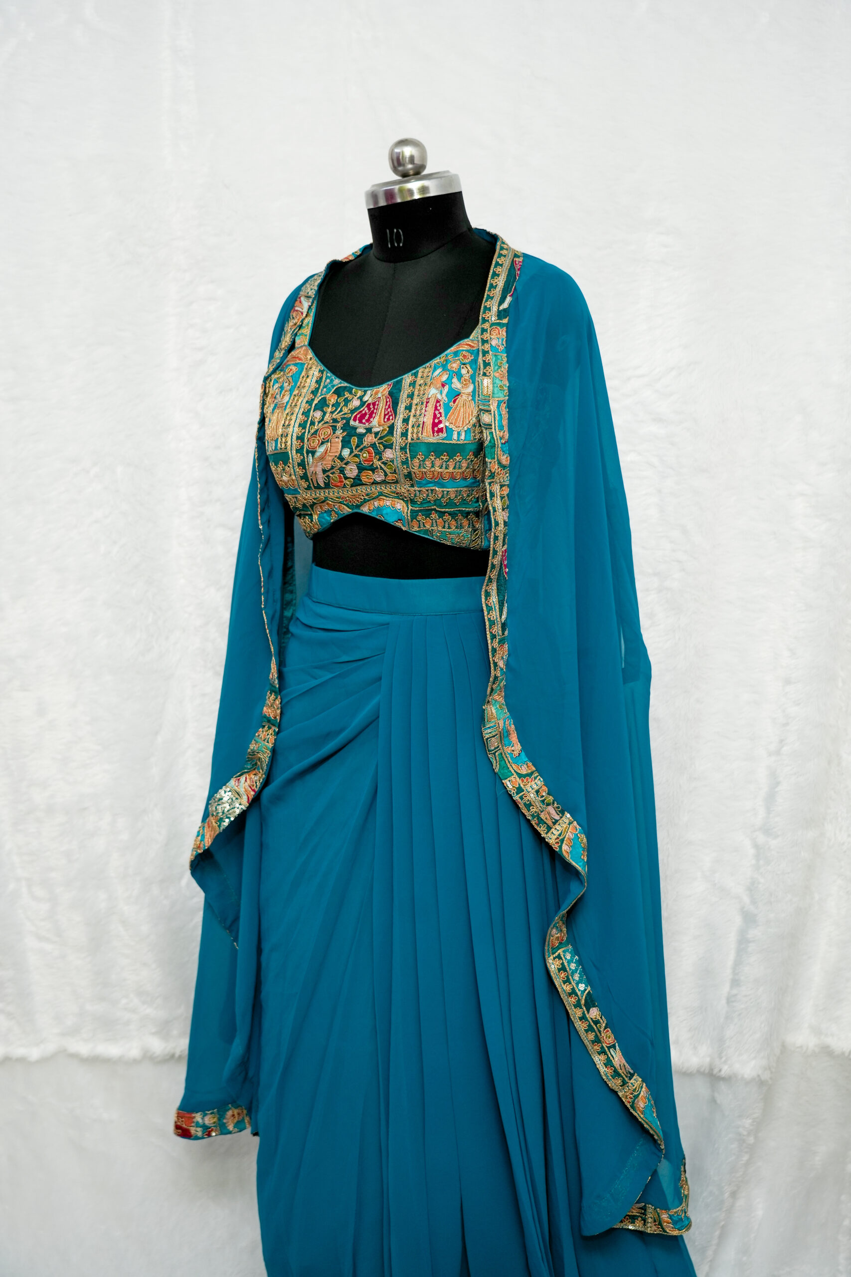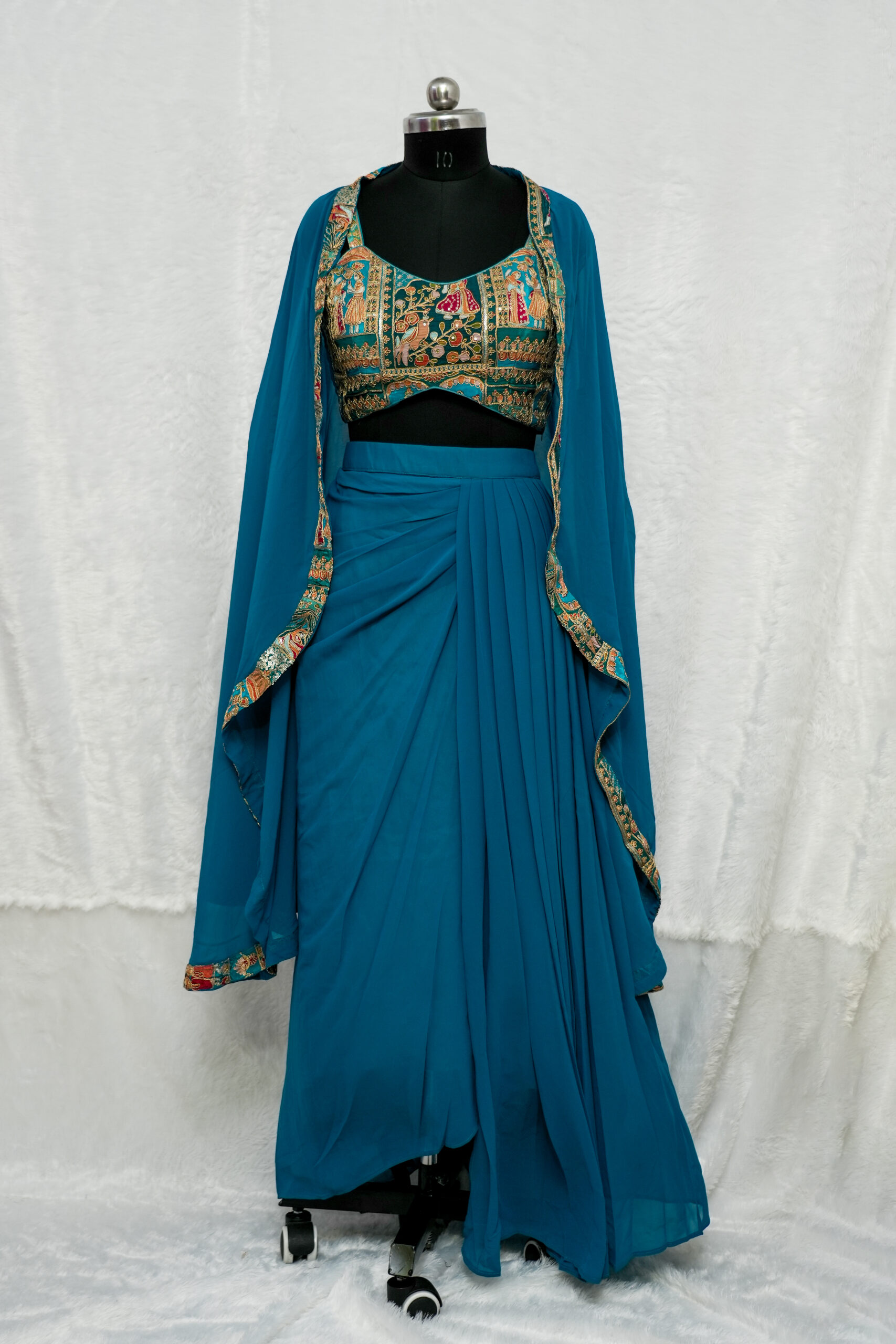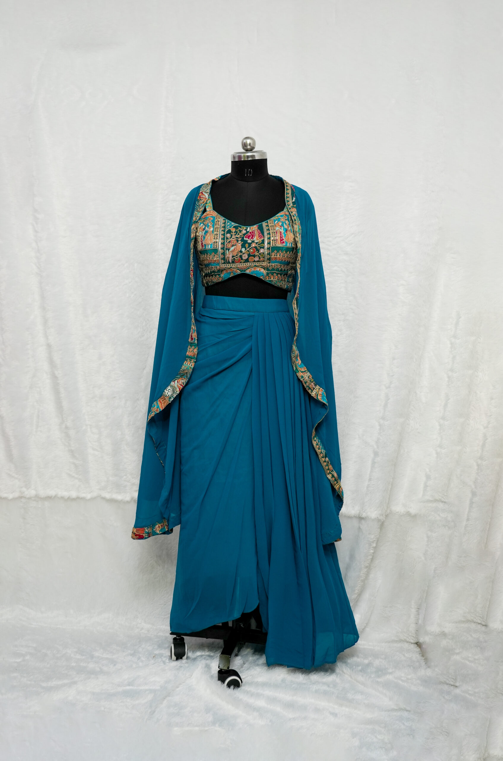 Fabric Georgette/Silk Blend (Bustier), Georgette (Skirt & Cape)