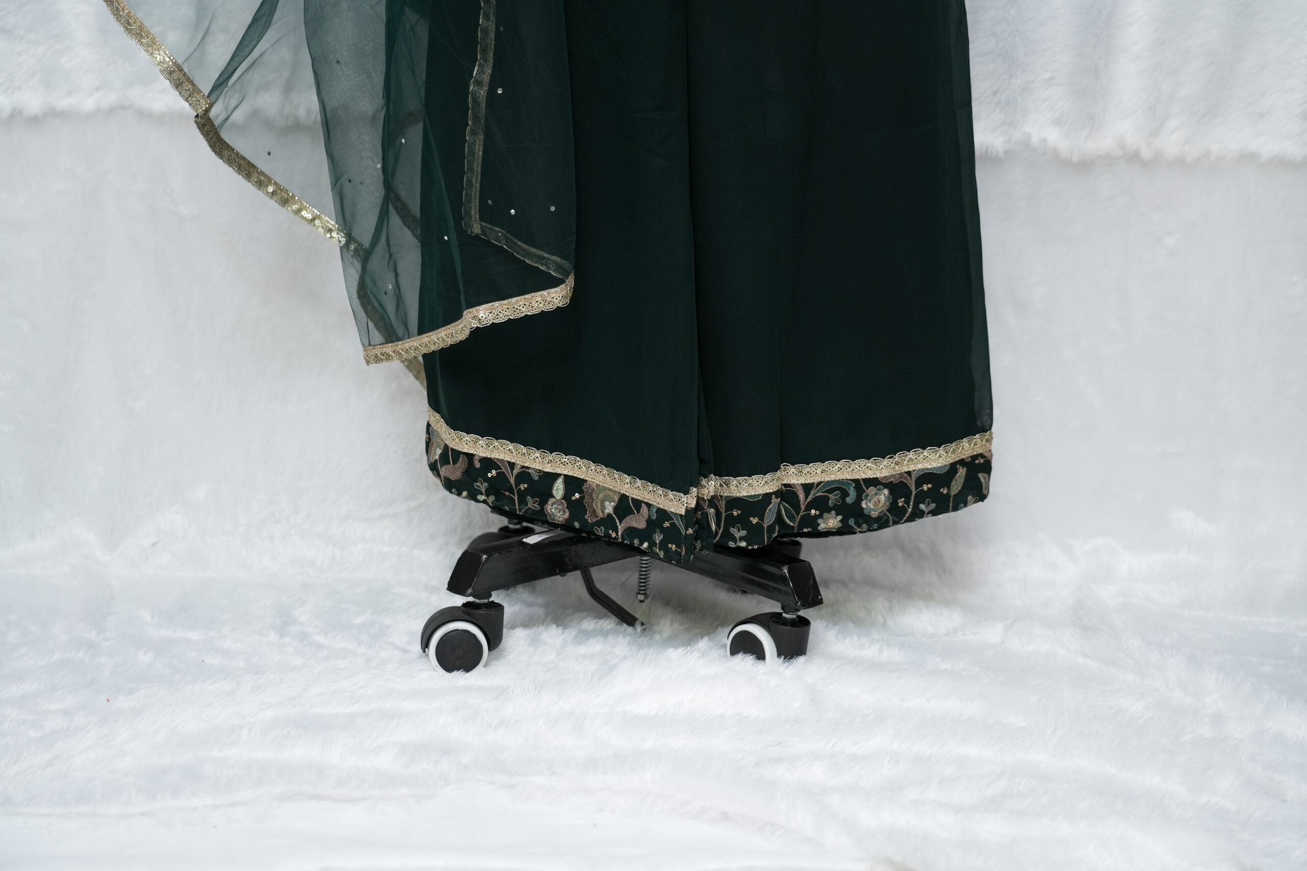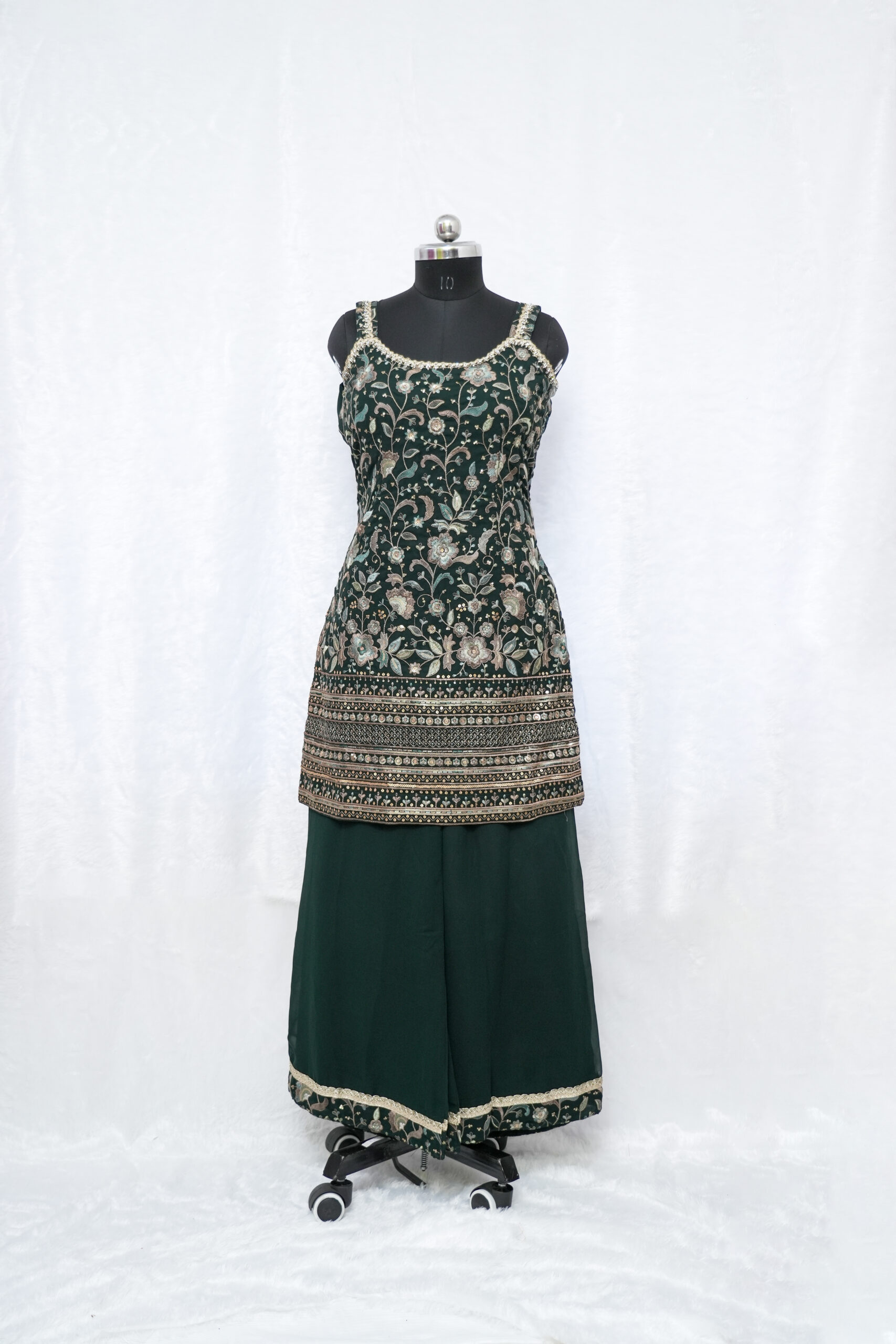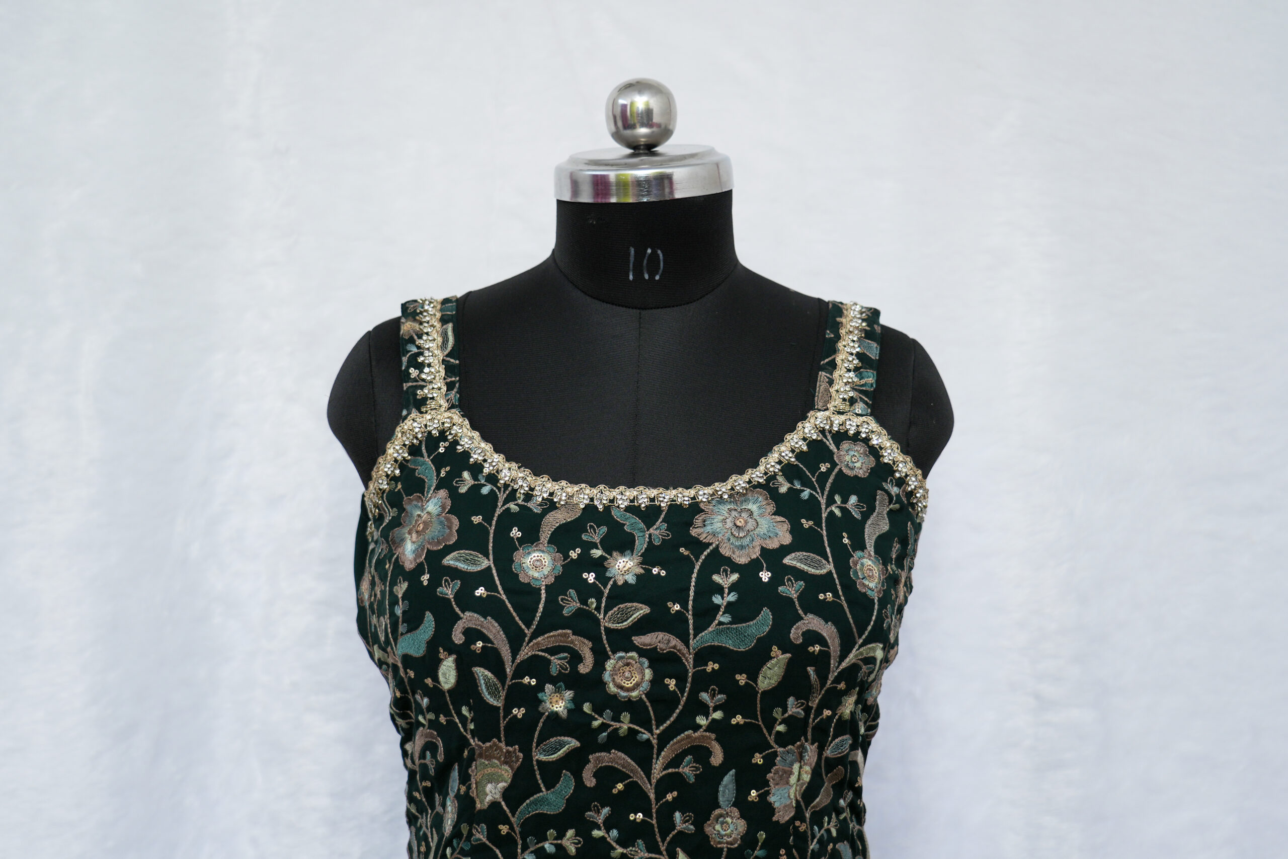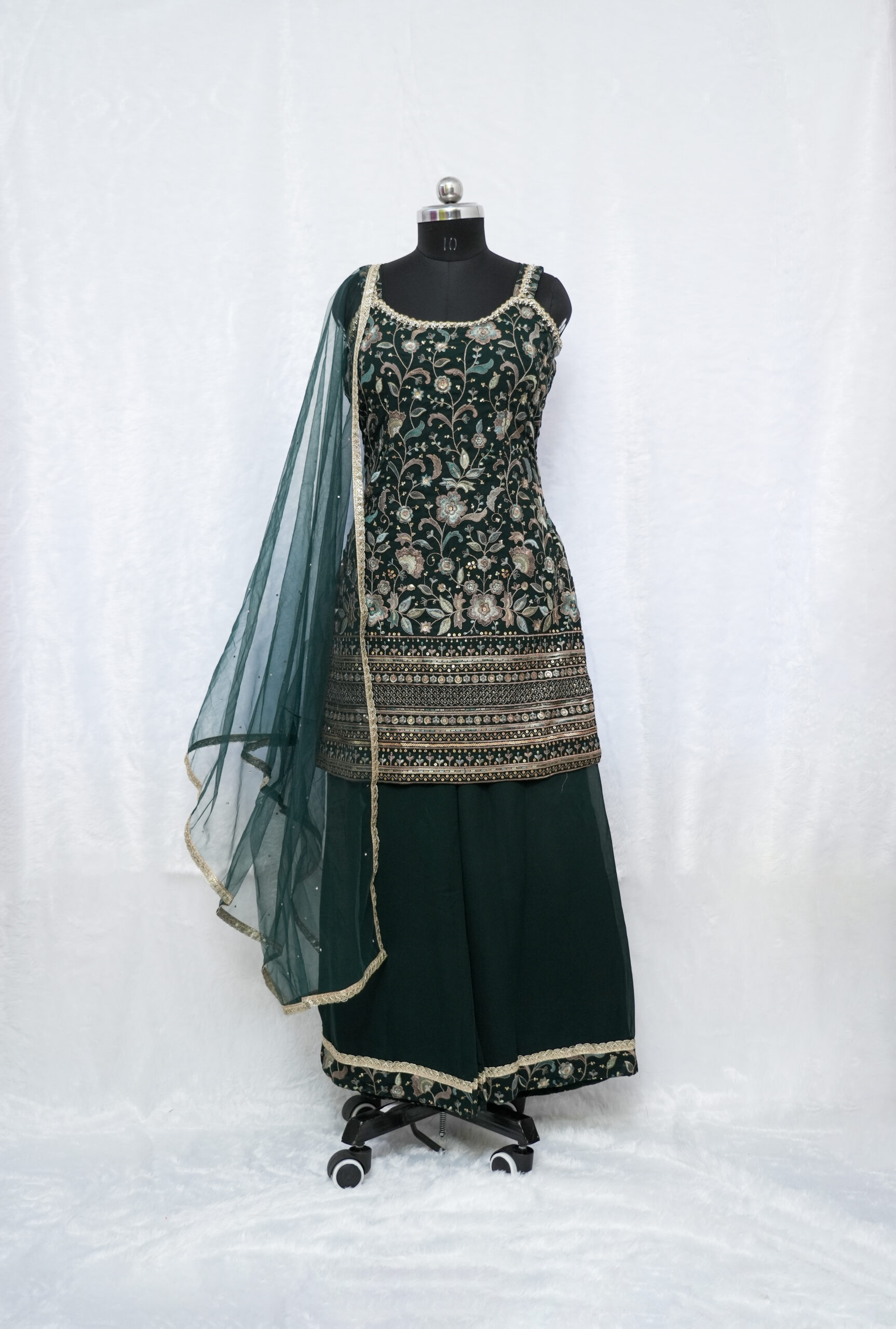 🔸 Color: Deep Green with intricate embroidery work